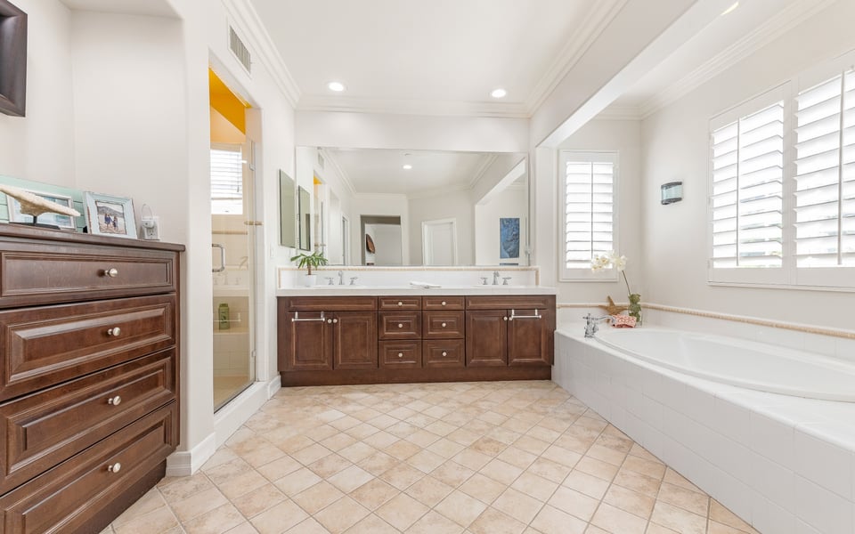 Upstairs you will find 3 bedrooms, all with closet organizers, a full bathroom featuring double sinks, and laundry room. Down the hall you will find the Master Suite - very generous in size. Large Walk-in closet with built-ins, large bathtub, separate shower, built-in dresser, plenty of cabinets space - and dual sinks. Feels like a spa!The whole space offers fresh neutral colors, new flooring and crown molding. This is the one you have been waiting for. Welcome home to 19 Via Ceramica.